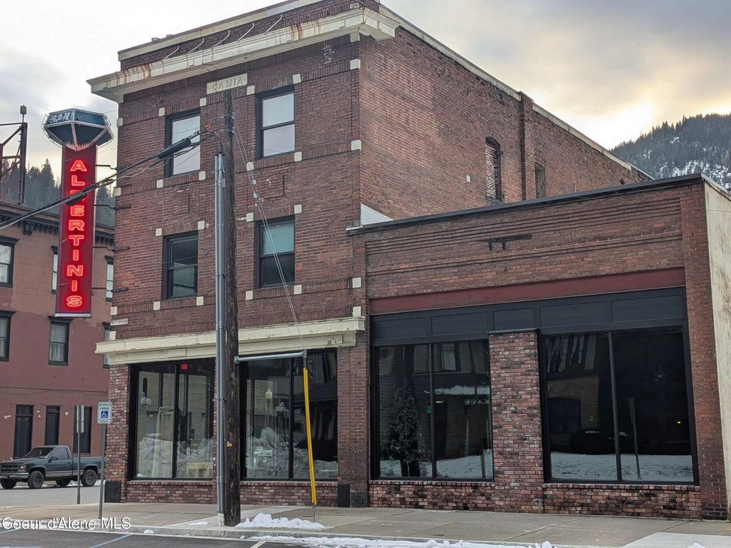 All of the hard work is done in this beautiful turnkey mixed-use brick building, originally built in 1914. The ''Camia'' sits in the heart of Downtown Wallace only 15 minutes from both Lookout Pass and Silver Mountain ski resorts. The building underwent an extensive renovation completed in 2023 consisting of a total interior engineering and remodel, including exposed post/beam installation, all new plumbing, HVAC, and electrical, all new dual pane energy efficient windows, and a new roof. The street level features a beautifully designed upscale bar and lounge with a cigar/library sitting room. All three commercial spaces have vaulted 12'-16' ceilings with a total floor space of approximately 5,625 sqft, as well as a 1,875 sqft basement. Attached to the lounge is an open restaurant space of 1,875 sqft that is ready for design and buildout. The second and third floors boast four fully furnished well-appointed lofts, with wide open floor plans, beautiful bathrooms with large walk-in dual head showers, laundry rooms, and full kitchens with stainless steel appliances. The lofts are designed for both short-stay and long-term rentals, the lobby entry and all loft doors have key and/or keyless (code/card) access control systems and there's also a remote monitor "Smart" CCTV system installed throughout the property. Attention to detail and design are apparent throughout this wonderful building as it maintains its historical exposed brick charm, with the benefits of new plumbing, electrical, HVAC, and energy-efficient infrastructure standards of 2023. All completed work is permitted with the City, County, and State.