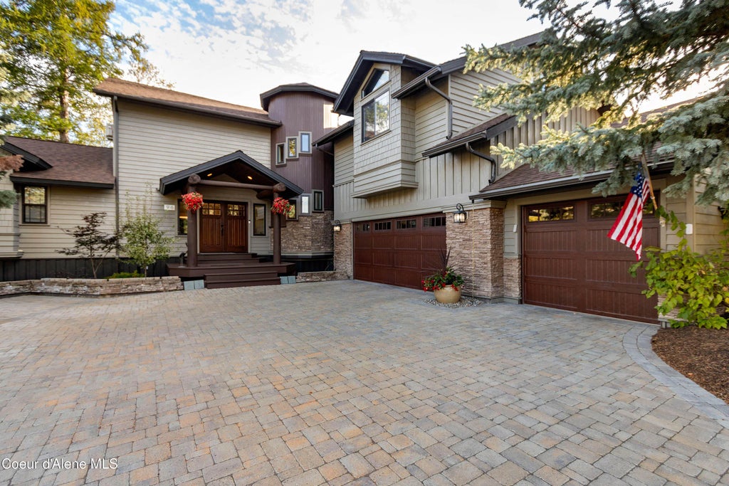Gorgeous, custom home situated on one of the most beautiful waterfront lots at the Idaho Cub, a world class Jack Nicklaus Golf Course. The home was renovated in 2020, and has 4BR, 2 are master suites, with lovely water views, main primary has a large walk-in closet and luxury bath. The living area has a beautiful fireplace, a wall of windows to let the daylight in, views of the water and a wall of built-ins. Kitchen has been updated with tile backsplash, quartz counters, stainless steel appliances, walk-in pantry and wine cooler. The dining room looks at the water and has a breakfast nook area. There is also an office with fireplace and access to the deck. There is a half bath off the office and a sizeable laundry room. 3 car garage with workshop space and room for your golf cart(s) Relax on your deck that overlooks the 17th Fairway and the water. A beautiful, recently built clubhouse/restaurant at the Idaho Club, and a marina on Lake Pend Oreille is just down the road