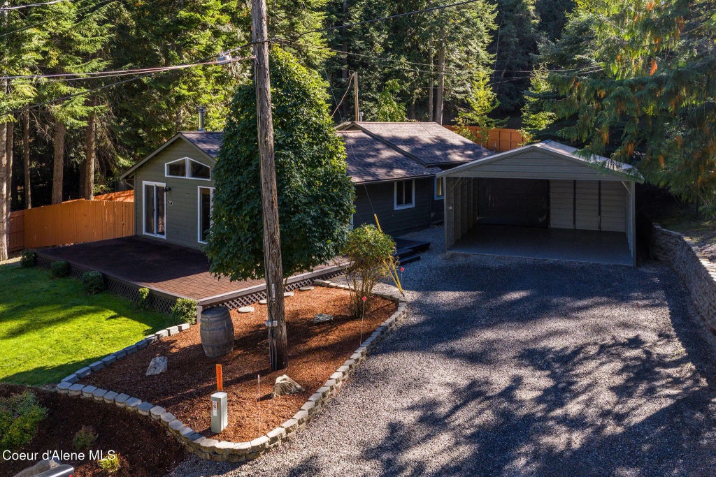 Hayden Lake Living! Turnkey & nicely updated single level beauty in the woods only 3 miles from the City of Hayden on paved county-maintained roads! Low maintenance 1/3-acre lot with tons of privacy and great outdoor living. This is a perfect empty nester home! 3 BEDS, 2 BATHS, 1,248 SF, 2 car carport with concrete pad & storage, new roof, new appliances (all included!), GFA & A/C, wood stove in great room, all newer hard surface flooring, large deck, cute barn style shop, woodshed (with a cord of wood!) and fully fenced & nicely landscaped all in a park-like setting!