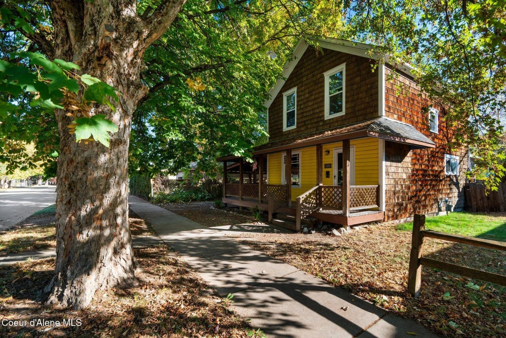 Classic home, nicely updated and located on a beautiful tree lined street in Sandpoint. Welcoming wrap-around covered deck and inviting living room with high ceilings, T&G wood accents and opens to the dining room & kitchen. Two spacious bedrooms and an updated bathroom with tile counters, tub/shower surround. Laundry room with counter area and access to a fenced back yard that has plenty of space for a garage or apartment that can be built with alley access. Covered carport, storage building and newer furnace. Property sits on 2-city lots (25 x 142). Ting high speed internet. A stone's throw to downtown, the schools, library, parks and more! Sandpoint Idaho with endless outdoor recreational opportunities, Lake Pend Oreille for boating & fishing and Sandpoint's Ski Mountain Resort. Owner may finance!