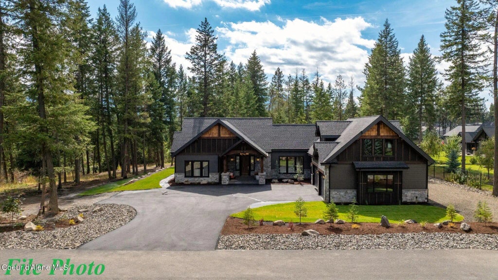 Brand new custom home TO BE BUILT in highly sought after Forest Lake @ Mullan Trail by local Parade of Homes winning custom builder! Meticulous attention to detail, steep roof lines, hand stacked exterior vaults over front entry, and spacious covered patio with handpicked large rough sawn timbers. Interior architecture incorporates tall, vaulted ceilings in the great room and 10-foot ceiling in Primary and Jr. Suites with exposed rough sawn beams and real engineered large plank flooring throughout. Designed professionally, the kitchen includes custom cabinetry with undermount floor and cabinet lighting, commercial grade appliances and natural stone countertops. 3 Bedrooms, 2.5 baths and 2,850 SF & an oversized 3 car garage.