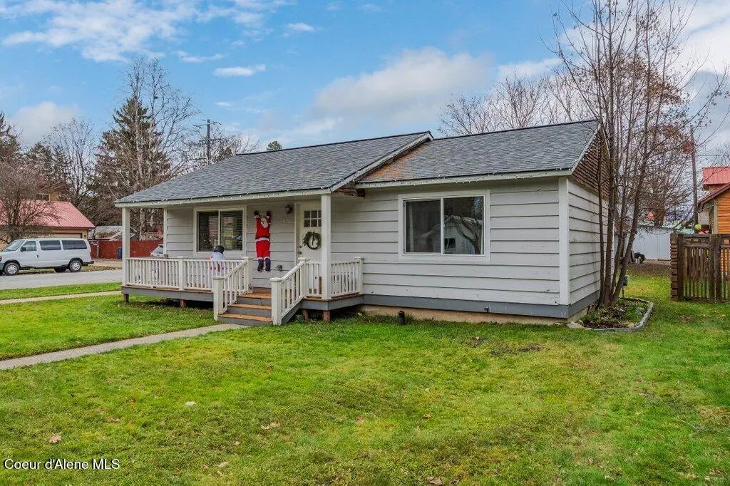 Wonderful home nestled on a large corner lot in the heart of Downtown Sandpoint! This single level home features a NEW ROOF that was installed in 2024, 2 beds, 1 bath and no carpet! Only real hardwood floors in the living room, hall, and both bedrooms along with tile in the kitchen and bath. Renovated in 2019, the kitchen boasts white painted cabinetry, full height backsplash, and GE Slate appliances. The living room is open to the dining, giving a spacious feel. The bathroom offers a floating vanity, tub/shower, and stacked washer & dryer. Wander outside and you'll appreciate the large back yard and single car detached garage with ample workshop space in the back. Located only 12 miles from the renown Schweitzer Mountain Resort that offers world class skiing, yet only a couple blocks from shopping, restaurants, and more in downtown Sandpoint.