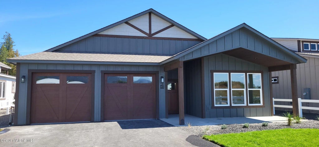 Welcome home to Hunting Lodges at Providence, Sandpoint's new premier neighborhood! Located at HWY 200 and Providence Rd., ''The Whitetail'' is a beautifully designed 2067 SF home featuring 3 bedrooms, 2 baths. The open-concept main living area showcases soaring 12' vaulted ceilings, abundant natural light, a cozy gas fireplace and high end finishes. The gourmet kitchen boasts custom Knotty Alder cabinets, large island, quartz countertops, premium GE Profile appliances, spacious 6x10 walk-in pantry. and stylish finishes, perfect for gathering and entertaining. The primary suite is a true retreat, featuring a tiled walk-in shower, double vanity, soaker tub and walk in closet with built ins. Relax on the front and rear covered porches and enjoy the mountain views. Front and backyard landscape with sod, sprinklers and curbing. Located near Lake Pend Oreille, Schweitzer Mtn, trails, golf courses & Sandpoint. Quality you have to see -Completed and ready to move in! Welcome to Hunting Lodges at Providence, Sandpoint's premier new neighborhood! ''The Whitetail'' is a thoughtfully designed 2,067 SF single-level home with 3 bedrooms and 2 baths. The open-concept living area boasts soaring 12' vaulted ceilings, abundant natural light, a cozy gas fireplace, and upscale finishes. The gourmet kitchen features custom Knotty Alder cabinetry, quartz countertops, GE Profile appliances, a spacious island, and a 6x10 walk-in pantryideal for gatherings and entertaining. The luxurious primary suite offers a tiled walk-in shower, soaking tub, double vanity, and a walk-in closet with built-ins. Relax on the covered front and rear porches while enjoying stunning mountain views. Landscaped front and backyard with sod and curbing included. Perfectly located near Lake Pend Oreille, Schweitzer Mountain, golf courses, and endless trails. Exceptional quality you must seecompletion August 2025!