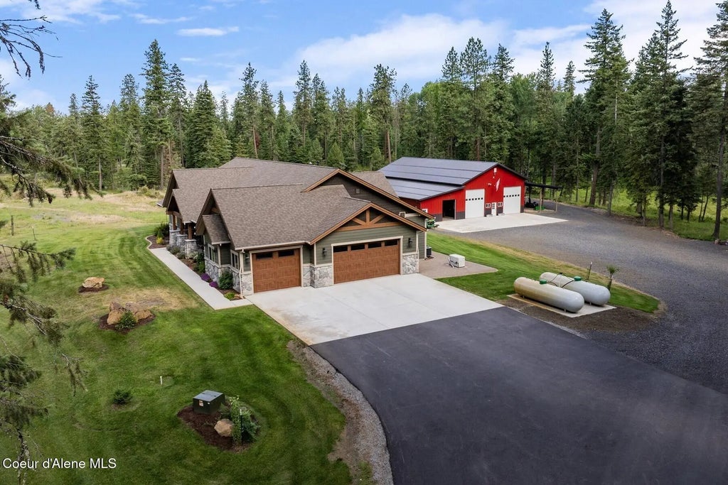 Rare 33+ Acre Estate only 5 minutes from the heart of downtown Coeur d'Alene and even less to the Hagadone Marina, zoned for 2-acre lots, it is a developer's dream. A stunning custom-built single-story home showcasing fine finishes and features throughout with a gourmet kitchen, large master suite, secondary suite, 3 car garage and much more awaits. Complementing it is an 80'x88' Shop/Barn with 14' tall doors ideal for big toys, RV parking, projects, or horses. Professionally parked out and fenced, with no CCR's bordering a 157-acre private parcel that is in conservancy, this property is prime for development, private estate, homestead, livestock, or multi-generational living with room for multiple home sites. Enjoy a 70+ GPM well, 400-amp service, automatic backup generator, pond, buildable ground, and an asphalted drive. Surrounded by nature yet minutes from Coeur d'Alene, Post Falls, and Spokane, this never-before-listed gem offers unmatched privacy and potential.