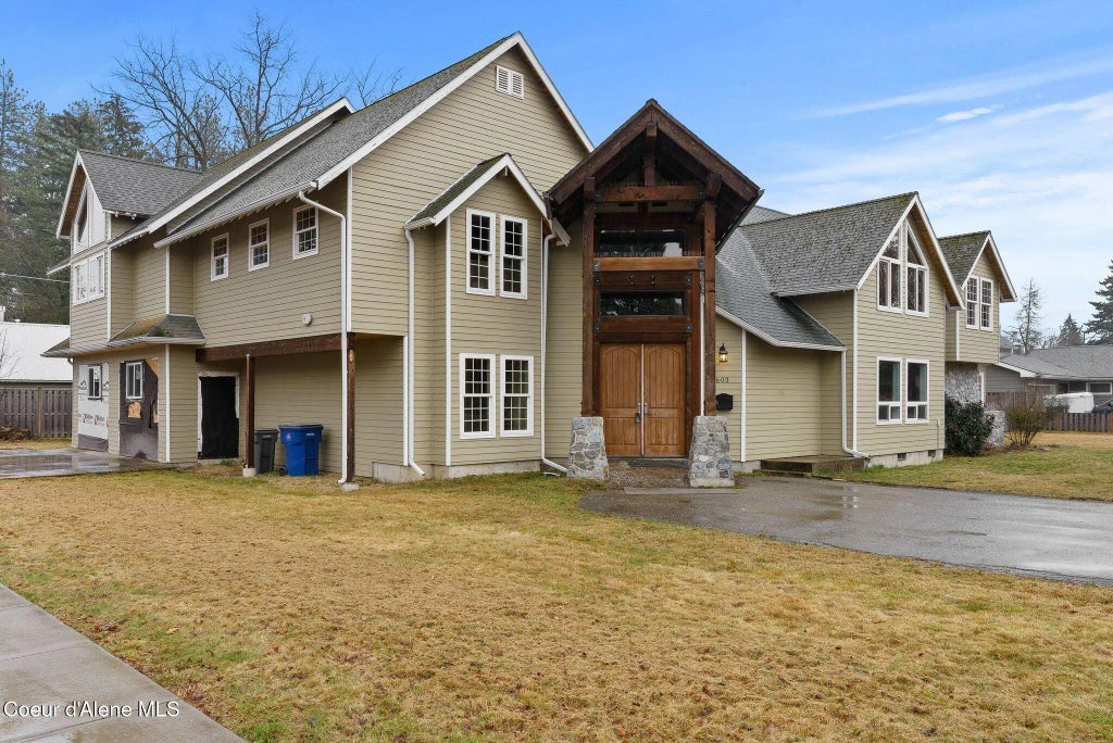This 6,000 sq. ft. home on a corner lot is just 1.5 miles from Sandpoint City Beach and steps from Lakeview Park & Boat Launch. With stunning curb appeal, a grand double-door entrance leads into a spacious interior. The bright white kitchen features quartz counters, classic tile work, a massive island with an eat-up bar, and plenty of room for entertaining. Upstairs, a gas fireplace insert and covered deck add comfort and charm. Demo has begun, offering a blank slate to customize the grand upstairs space and parts of the main level. The huge fully fenced backyard is perfect for gatherings, complete with a fire pit, patio, and double-gate entrance. Don't miss this incredible opportunity to create your dream home in one of Sandpoint's most sought-after locations!