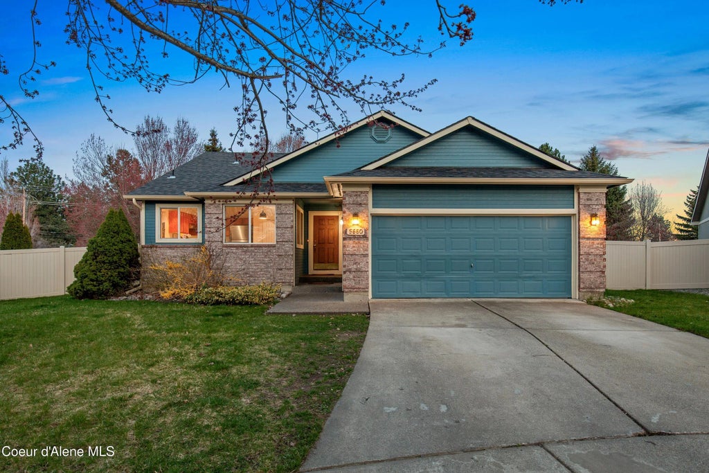 Exceptional One-Owner Home in Prime Coeur d'Alene Place community! Quality-built Williamsburg floor plan featuring 4 bed, 3 bath with 2,656 sq ft of functional MAIN LEVEL LIVING and a fully finished daylight basement with additional laundry setup in place ideal for extended living or rental potential. Boasting recent improvements with a new roof in 2019, exterior paint in 2023, new hot water heater, flooring, interior paint, light fixtures, appliances, and two cozy gas fireplaces! The main level fireplace w/artful masonry, raised hearth, & stone mantle ads character and warmth to the family room, and the lower-level free standing gas fireplace provides steady heat throughout the finished basement. Fantastic SINGLE LEVEL floor plan includes thoughtful split bedroom design w/MAIN FLOOR PRIMARY suite, guest bedroom & bathroom w/walk out shower, folding bench, & grab bars. Spacious laundry/utility room breezeway to oversized two car garage. Traditional kitchen with stainless steel appliances & eat-in breakfast dining area, and versatile formal dining room could be used as a home office or den. Downstairs you'll be impressed with the extended living areas and amount of NATURAL LIGHT pouring through multiple egress windows in living room and bedrooms. Situated on a spacious .23 ACRE parcel in lovely Coeur d'Alene Place community with Bluegrass park, lush green belts, and multiple trail systems that connect to The Centennial Trail, Spokane River, Atlas Mill River, and Downtown Coeur d'Alene. Close to Costco, Kootenai Health, schools, and shopping. Excellent opportunity in a highly desirable area of CDA. A rare find in a thriving corridor. Make your move!