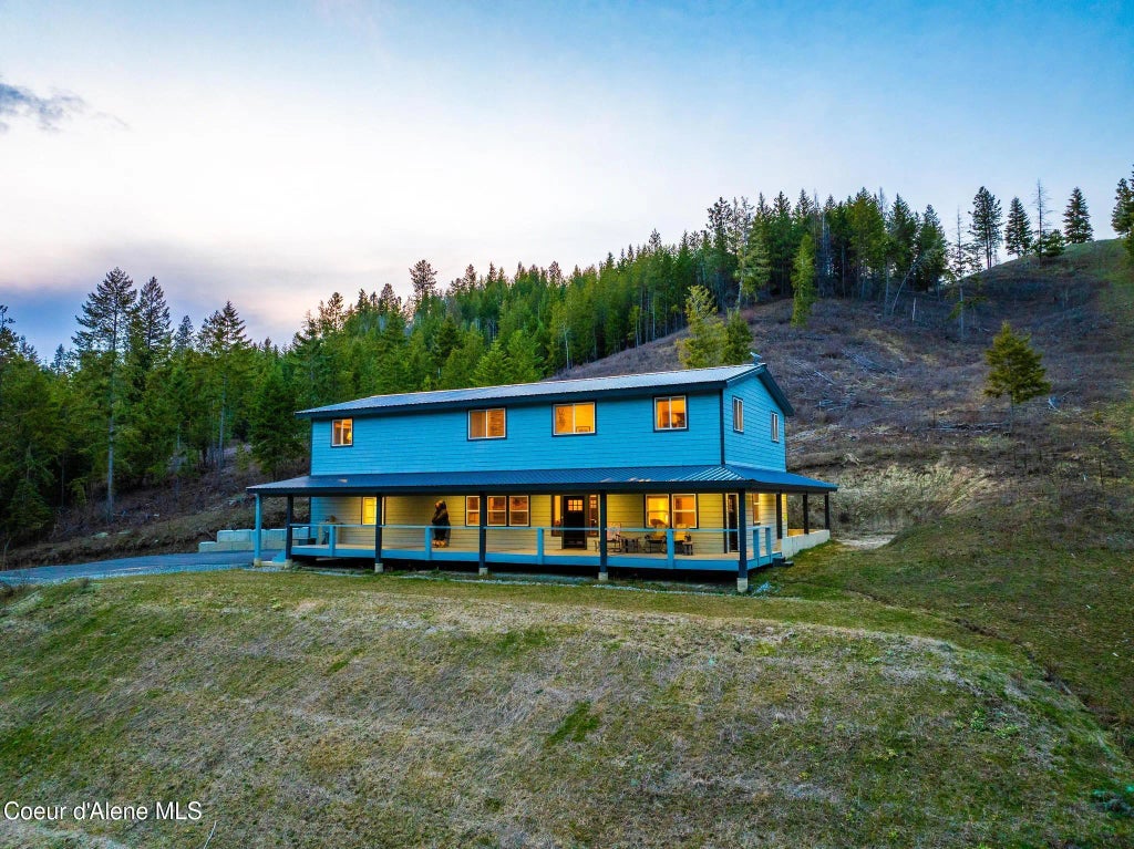 Over 370 Thousand price reduction! This beautifully crafted 5-bedroom, 3.5-bath home blends rustic charm with modern comfort, featuring warm wood accents, soaring 10-foot ceilings on both levels, and a striking floor-to-ceiling stone fireplace with a gas stove insert. Enjoy the flexibility of dual master suites, each with oversized walk-in showers—perfect for guests or multi-generational living. The spacious kitchen offers high-end appliances, a walk-in pantry, and breakfast bar, all framed by large windows that bring the outdoors in. Step onto the expansive wraparound covered deck to watch elk and wild turkeys roam by. Starlink internet & a whole-house generator ensure year-round comfort and connection. The 30x40 shop and oversized 2-car garage provide ample room for projects, storage, or toys. With county-maintained access, no HOA or CCRs, & minutes to McArthur Lake and Roman Nose trails—this is North Idaho living with freedom, space, & peace of mind.
