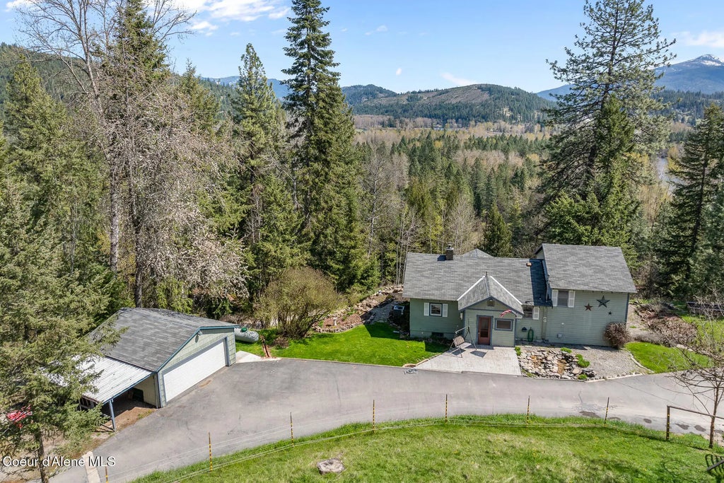Exceptional Location with Views of Coeur d'Alene River and Silver Mountain! 4BR/2BA Charming Home with nearly 2,400 sq ft featuring laminate flooring throughout, remodeled bathrooms and remodeled master suite. Mostly paved driveway leads to a serene setting with a landscaped yard, sprinkler system, water feature, fenced pasture and VIEWS! Detached 2 Car Garage, Detached Carport and 4-Stall Barn for animals. You can't beat this location less than 2 miles to the Freeway, on Cataldo Water System and on a county-maintained road. Country living yet easy access!