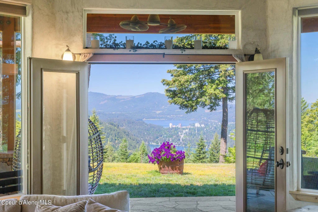 Check out this North Idaho experience only minutes from Coeur d'Alene in a gated area. The home has endless views from every room with sunsets that conjure tranquility. This stunning home on 15 plus acres offers a 58' X 28' shop with 800 SF additional living unit above the shop with privacy and 360 degree views of gorgeous scenery as well as wildlife that North Idaho is known for. Peer out the oversized picture windows in the living room to take in the beauty of two local lakes at once, Lake Coeur d'Alene and Fernan Lake. As you look to the Northwest, take in the views of Rathdrum prairie and Mt. Spokane with the ski runs twinkling on the mountain top in the evenings. As the sun rises in the East the play of colors will not disappoint as they cast vibrant colors over the mountains and trees while you enjoy your morning cup of coffee. Inside this expertly crafted home with main floor primary suite, you will discover warmth and well appointed amenities. Check out the expansive vaulted ceilings featuring custom wood tongue and groove, North Idaho Diamond flagstone flooring throughout that flows into the floor to ceiling stone fireplace. Radiant floor heat throughout the home keeps the temperature consistent and comfortable. The kitchen is built for the chef at heart and family gatherings with granite counters, knotty alder cabinets, stainless steel appliances and a large walk in pantry many dream of. The bedroom on the main floor has two large closets and a large bathroom. Upstairs is a loft as well as three bedrooms and two bathrooms. It's worth checking out.