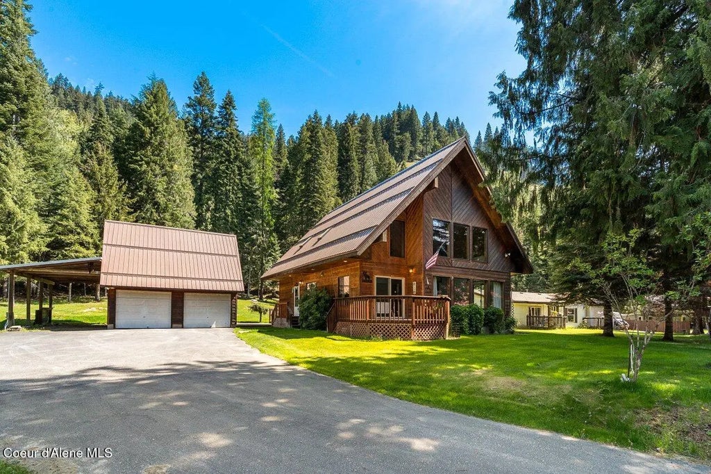 Escape to your mountain retreat! This charming 2 bed, 2 bath cabin sits on two spacious lots totaling one acre near the scenic North Fork Coeur d'Alene River—renowned for world-class fly fishing. Enjoy peace and privacy with adjacent USFS land - perfect for hiking, hunting, and outdoor adventure. Features include a 2-car garage, rustic charm with open floor plan, propane furnace plus a woodstove, pine T&G loft, newer metal roof, 13KW Generac, and plenty of room to relax or entertain. 2nd lot has power, water & phone at the street...perfect for friends & relatives to build next door! Don't miss this rare opportunity to own a slice of North Idaho paradise! Home on one lot is available for $479,900. Deeded access to river across road.