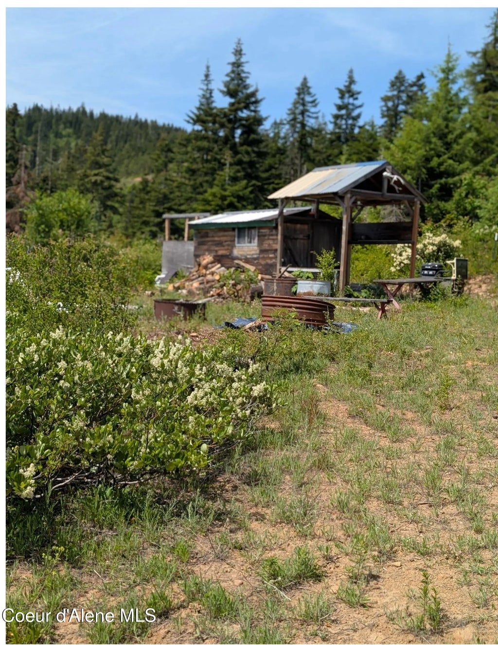 Weather-tight shelter has kept family warm & dry in coldest of weather, cozy w/solar lighting, all on 10 acres of adventure & exploration. Mountain property ideal for get-aways or year round living for hearty adventurers. Views of both St Joe and St Maries rivers, and views across the valley to Mt Baldy. 8x12 cabin with 8x6 covered porch, solar lighting, open 'bath house'; privy; bldg materials onsite for additional construction. Southern exposure with rich soil excellent for gardening. Broad variety of berries, herbs, & wildlife to harvest. At least 5 ways to exit the property in case of fire or evacuation.
