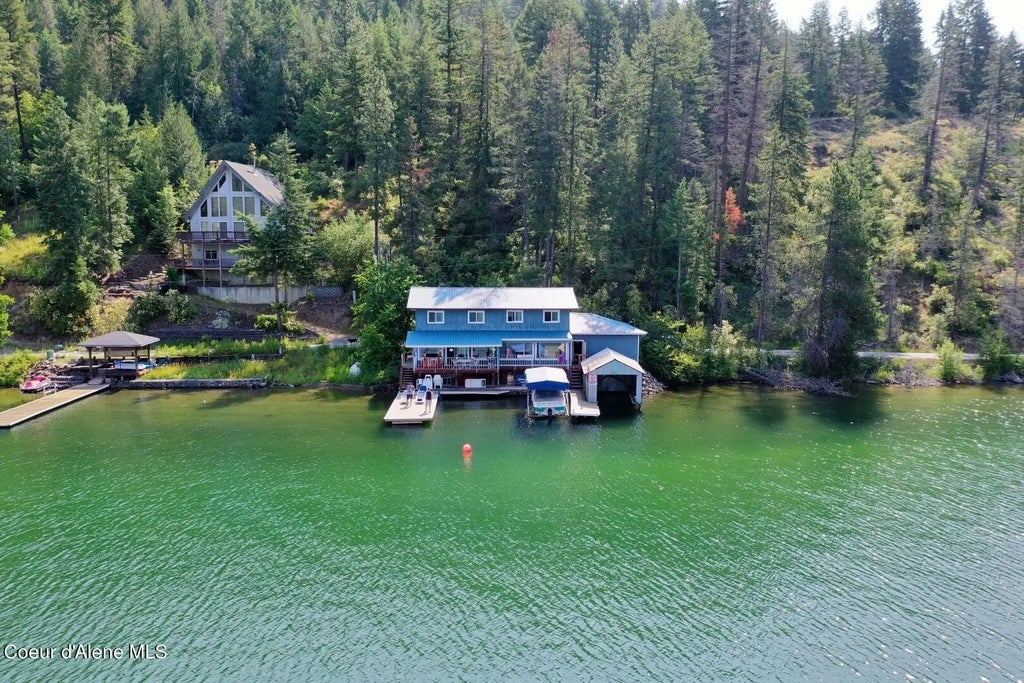 On the Lake, literally! Unique opportunity to own this 4 bed 2 bath lakefront home, built before setback rules in place. Experience intimate waterfront living just a few feet from the beauty of nature. Amazing Schweitzer views, two docks, grandfathered boat house, boat and jet ski lifts, attached two car garage and extra parking across the road. Paved access all the way from the highway. This is the first home on E. Bottle Bay Rd, so no need to pass over multiple speed bumps. Lot extends up hill on east side of road, 75 feet wide. Home could be replaced in its current location, boat house could be improved as well. Prime opportunity as this circumstance no longer allowed by current county standards. Well report says 5 gpm, 100 feet deep
