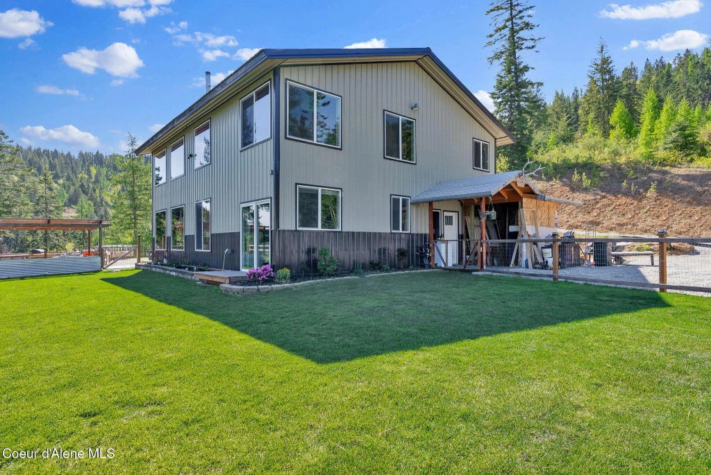 Panoramic Views, Barndominium Style Home + Guest House on 10 Acres! Experience breathtaking panoramic views of the city, lake, and river from this one-of-a-kind Post Falls property! Perched on top of the mountain, this barndominium-style retreat offers unmatched privacy, space, and features. The main home boasts 5 spacious bedrooms and 2.5 bathrooms, with a warm and inviting wood-burning fireplace, expansive windows that flood the space with natural light, and a layout perfect for entertaining or relaxing in the peace of North Idaho living. A charming 1 bed / 1 bath guest house provides ideal accommodations for guests or rental income. Outdoors, enjoy a large garden area, established landscaping, a chicken coop, and even your own private shooting range. Gather around the firepit under the stars or enjoy the security of a fenced area for pets and play. This is truly a must-see property with endless possibilities!
