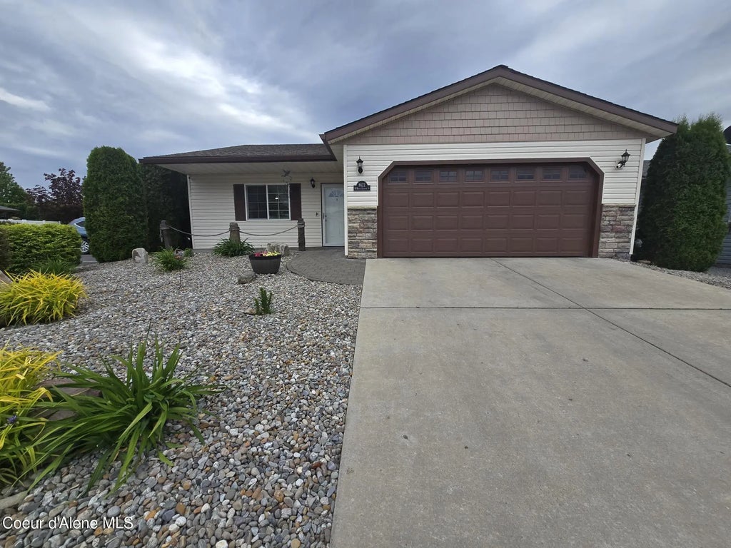 Immaculate, Move-in Ready 55+ Stick Built Home. Welcome to Jasper Falls, where you can live a country club lifestyle w/amenities galore, such as a warm water aerobic salt pool, sauna, hot tub, pickle ball, billiards, bocce ball, horseshoes, and much more! Everything is maintained with meticulous care in this 3 bedroom home. Amazingly landscaped oasis in the back yard. No grass to mow, just sit back and enjoy your colorful landscape while snacking on raspberries & strawberries from your own bushes. From the living room & front porch you have an amazing view of Rathdrum Mountain. Easy, low maintenance living at its best. All appliances included, as well as storage racks in garage. The home is even piped w/central vac. Stay comfy with a gas fireplace, central AC, and forced air gas furnace. Kitchen has a newer electric range, but piped for gas as well. Back porch has a BBQ stub. Community Fee covers WSG, prop tax on lot, land lease, use of the vast amenities and their upkeep.