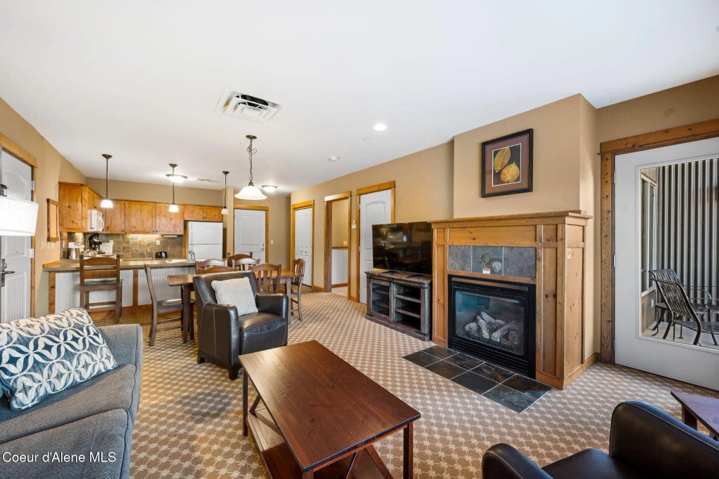 $5000 Buyer Credit! Step into your dream escape at this OVERSIZED CORNER 1-bedroom condo, thoughtfully designed for comfort, accessibility, and convenience to Silver Mountain's renowned slopes and trails. With ADA compliance, this unit welcomes everyone to enjoy the natural beauty and ease of mountain living. Inside, discover an open and airy floor plan that offers additional space for relaxation and entertaining. The living area flows seamlessly to your private patio, a tranquil spot to soak up the views of snow-capped peaks and breathe in fresh mountain air. Whether it's a cozy winter night or a crisp summer evening, the stunning vistas make it a perfect backdrop for any season. Enjoy exclusive HOA amenities like the rooftop hot tub, — a welcoming retreat after a day of mountain adventures. For those looking for a versatile investment, this condo offers flexible rental opportunities, giving you the option to share the beauty of Silver Mountain with guests when you're not there.