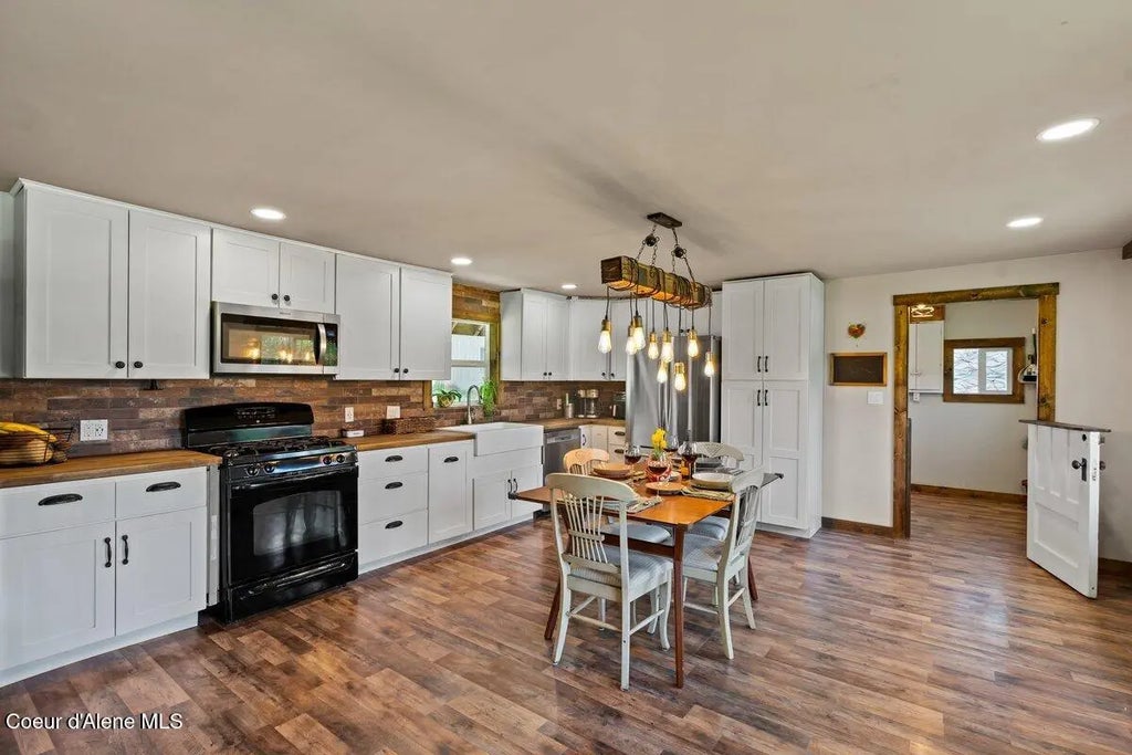Enjoy the bright and open layout with stunning mountain views from this adorable Farm home with North Idaho Charm! This beautiful 1,900+ sq ft home on nearly 7 acres combines modern upgrades with plenty of room to bring the farm animals.. Many updates including new plumbing, new electrical/windows/recessed lighting, large & adorable kitchen, updated bathrooms, brand new stairwell,, and energy-efficient appliances. Two master suites w/ full baths (one main floor and one upstairs), a third full bath for guests, a bonus room (perfect as an office or 4th bedroom), family room w/ wood stove, workout room, spare bedroom, and even a root cellar for storing garden veggies. Water features include pristine well water and an underground natural spring with water rights, plumbed across the property. Outside you'll find a large barn with hayloft, 2 fenced areas for pets/livestock, small pond, 2 add'l outbuildings, wood storage, motion-sensor lighting & solar accents. End of the road privacy too