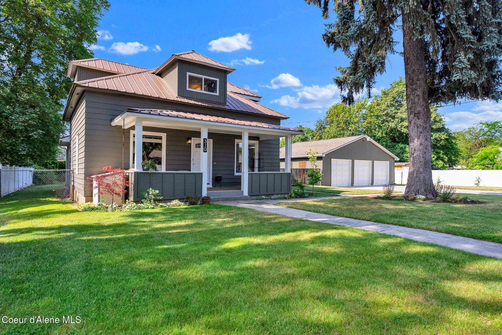 Welcome to this luxuriously remodeled down to the studs home on nearly half an acre near downtown. Beautiful sophisticated home with a main floor primary suite and high-end finishes throughout. Nestled on a rare .42-acre lot, zoned R-12 with a spacious fully fenced backyard and 130 ft of road frontage gives you the ability to have instant equity to subdivide into two huge lots—Or just enjoy the private park like setting with your family and friends. This property features an impressive 30x40 heated garage perfect for parking, a workshop or storage. Prime location: walk to Trader Joe's, Pilgrims Market, parks, and Lake Coeur d'Alene; 2-minute drive to Downtown Coeur d'Alene and Riverstone. This home feels new with a tasteful touch of historic character. No detail has been overlooked.