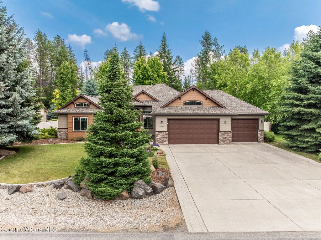 Fully Loaded & Immaculate Rancher in Sought-After Rimrock Forest Estates! Turnkey Beauty offering 2,162sqft, 3beds, 2baths, finished 3-car garage, soaring trace ceilings, walnut hardwood floors, A/C, floor-to-ceiling stone fireplace, tile flooring, chef's kitchen with granite counters, high-end cabinetry, upgraded SS appliances & LRG island, formal living room & family rooms, spacious master suite with coffered ceilings, walk-in closet & ensuite bath w/double vanity, tile surround shower & soaker tub, formal & INF dining, dedicated laundry, oversized back patio, picture perfect landscaping, mature trees & incredible curb appeal! Recent updates include new furnace & A/C in 2024, h20 tank, new flooring throughout, interior & exterior paint, lighting & fixtures, high-end water softener system & full irrigation system. Enjoy living in this premier location a golf cart's distance from Hayden Lake CC, Avondale Golf Club, The Porch Restaurant, public boat launch & Beautiful Hayden Lake!