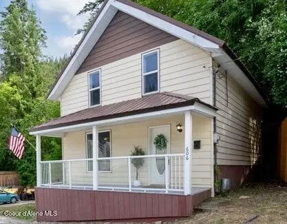 This beautifully remodeled 3-bedroom, 2-bathroom home boasts breathtaking views of Wallace City Pool, the historic downtown skyline, and majestic mountains. Perfectly situated on a rare flat lot with room to build a garage or park an RV, it's steps from lively restaurants, grocery stores, hardware stores and the center of the Universe! Enjoy high end stainless steel appliances, modern laminate floors, enormous windows, an inviting open deck, and a cozy covered front porch and back patio. Two spacious bathrooms, plush new carpet, and a basement mudroom/laundry make it ideal for skiers or bikers. A prime Airbnb opportunity in vibrant Wallace, home to the Huckleberry Festival and minutes from two top ski resorts!