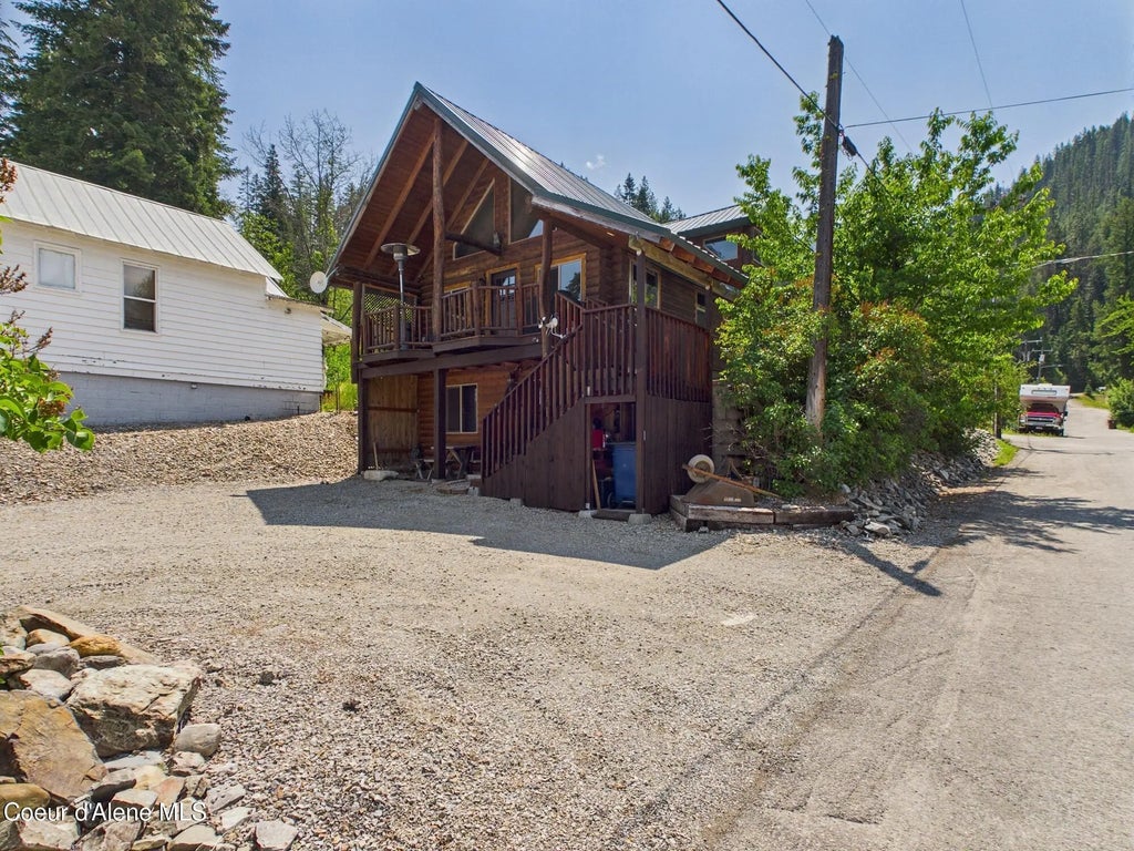 Enjoy the beautiful mountain views all year long from this amazing custom log cabin getaway located in Mullan, Idaho. Only 6 miles from the Lookout Pass Ski Area parking lot, and minutes away from endless miles of recreational trails for your ATV's, hiking to Pristine Mountain Lakes & Rivers, and the ''Center of the Universe'' in nearby Wallace. This spectacular Hand-Peeled Log home features custom-built railings inside & out, a covered back patio area, custom light fixtures, and vaulted ceilings, just to name a few! The entire main floor features custom rough-sawn wood floors with a radiant floor heating system. Outside you'll find two huge parking areas one of which has full RV hookups with 30amp/sewer/water/cable. This property has also earned a reputation as a VRBO/Airbnb ''Exceptional'' rating. Come check it out today before it's gone!!!