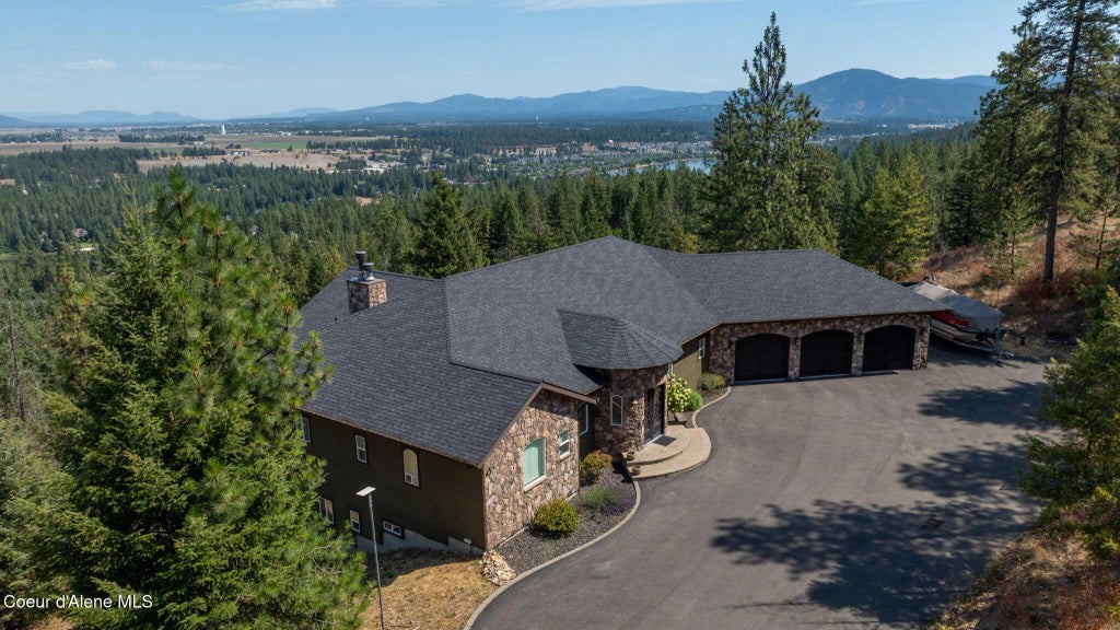 Don't miss this Exquisite High-Quality Custom Home boasting almost 6,000 SF & UNEQUALED 180-DEGREE VIEWS of the Spokane River and the whole valley below! Pictures don't do it justice! Genuine travertine tile, high-end custom cabinetry throughout, heated flooring throughout (multiple zones) which keeps the home at an even temperature, whole-house speaker system, & whole-house intercom system give you the upscale style that you've been looking for! As you enter the home through the ornate custom iron doors, you step into the inviting entryway alcove which leads to the expansive GREAT ROOM with large stone woodburning fireplace insert. Next to the great room is the grand gourmet kitchen any chef would envy with custom cabinetry, granite countertops, and high-end Kitchen Aid appliances. Down the hall from the kitchen you will find an office, a half bath with custom vanity & copper sink, a separate laundry room, and a mudroom with custom cubbies which leads to the over-sized 3-car garage. Farther down the hall you will find two very spacious bedrooms, each having their own full bath. From the Great Room, you enter the large master suite which has tremendous views as well!! Downstairs boasts a full apartment perfect for MULTI-GENERATIONAL LIVING featuring a full kitchen, living room, media area, two bedrooms (no closets), one full bath, a workout room, and a large storage room. Below the basement is another level (not heated) which can be used for a shop or a gaming area. Home is equipped with a built-in whole house generator. To top it off, hike the trails of this wooded 12-acre property to your heart's content!!