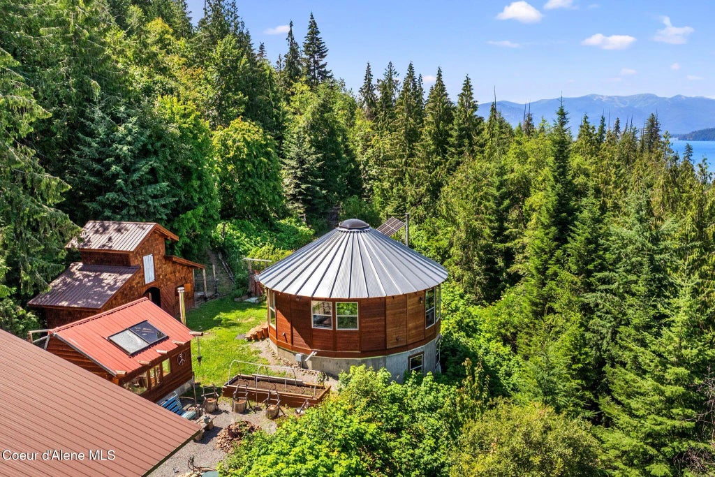 Nestled in North Idaho's pristine wilderness, this extraordinary 1,734 sqft custom home offers unparalleled off-grid living on 10acres with breathtaking 180-degree views overlooking majestic Lake Pend Oreille and surrounding mountain ranges. Designed for sustainable luxury, the property features a gourmet kitchen with commercial-grade 36'' stainless range, professional fridge, and handcrafted hammered copper sink, complemented by custom cabinetry and striking turquoise stone backsplash. Year-round comfort comes from a freestanding gas stove and ultra-efficient Blaze King wood stove, with eco-conscious Heatlok Soy Green spray foam and Rockwool insulation ensuring energy efficiency. The property's robust systems include ample Solar power with Lithium batteries, a 14,000-watt generator, buried 1,000-gallon propane tank, 1,500-gallon cistern, and reliable 15+ GPM well. Multiple outdoor living spaces showcase the stunning lake views, including a fireside cantina bar and custom Italian pizza oven at the secondary firepit - perfect for entertaining while enjoying Lake Pend Oreille's ever-changing beauty. This homesteader's paradise features a 10x16 cedar/stone greenhouse, fenced garden with 6 raised beds, an herbal garden, a new animal barn, and chicken run with two coops, plus an orchard producing apples, pears, cherries and plums. The massive 50'x24' garage/workshop with concrete floors and electrical service provides ample space, with potential for expansion. Just 30 minutes from Sandpoint's amenities yet completely private via county-maintained roads, this turnkey property masterfully blends seclusion with accessibility. From the commercial-quality kitchen to the agricultural infrastructure and those mesmerizing Lake Pend Oreille views, every detail creates a self-sufficient lifestyle without compromising comfort. This rare offering combines sustainable design with breath taking natural beauty, delivering everything needed for modern homesteading against a backdrop of North Idaho's most spectacular scenery.