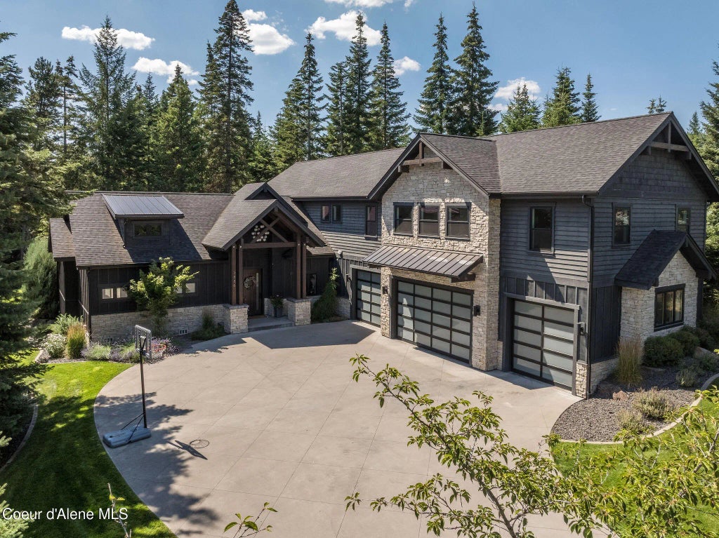 Absolutely magnificent property in the highly sought-after Ridge at Cougar Bay, less than 10 minutes from downtown Coeur d'Alene. This stunning 5 bed, 4.5 bath, 4,470 sq ft custom home was built in 2018 and offers the perfect blend of luxury and functionality. The open-concept kitchen features an oversized island, bar area, and flows seamlessly to the covered patio with a full outdoor kitchen—ideal for entertaining. Step outside to enjoy the custom-built fire pit, open patio space, and dedicated garden area. The expansive main-floor primary suite includes a walk-in shower and large closet. A private office, flex space, spacious laundry rooms on both floors, and an additional upper-level suite plus three more bedrooms provide ample room. Set on a beautifully landscaped .61-acre lot with full sprinkler system, this home also offers radiant floor heating on the main level, luxury vinyl plank flooring, and abundant storage. Nestled in a wooded neighborhood of custom homes.