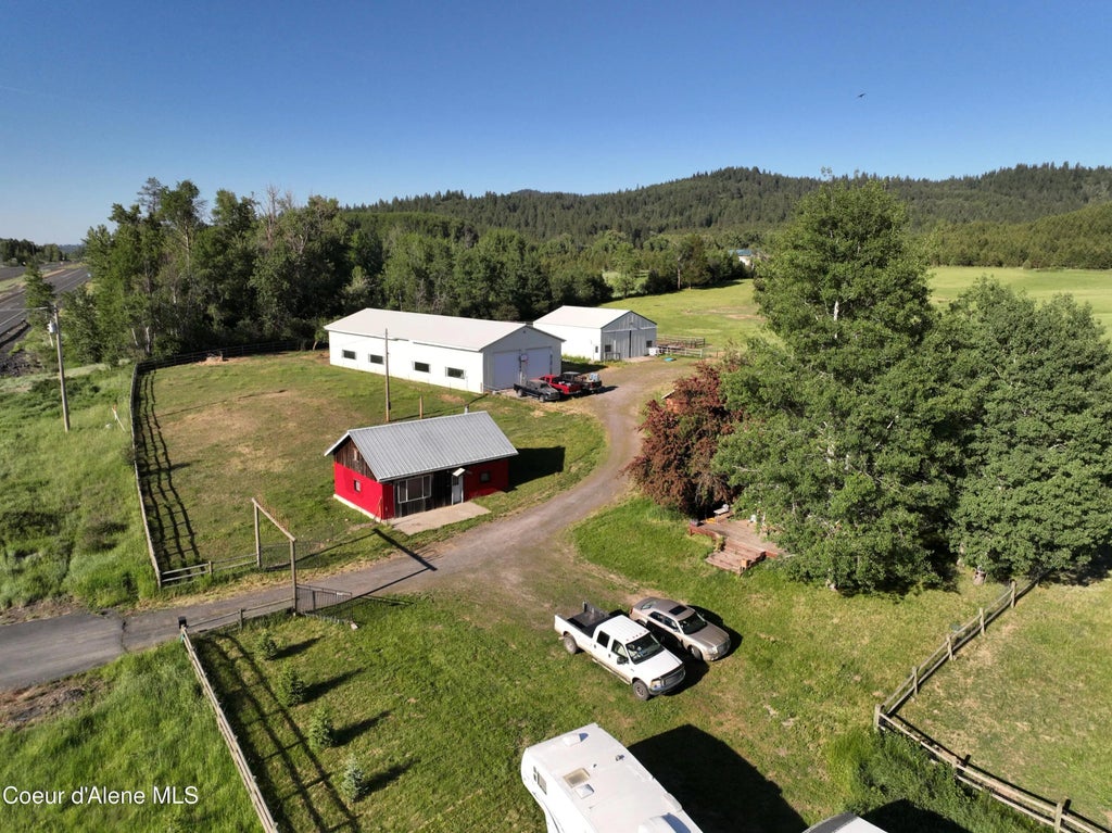 Rare find close to Coeur D Alene! Beautiful sprawling acreage conveniently located 12 miles south of Coeur D Alene on highway 95. Double gated driveway. Charming updated 2 bed/2 bath house with room to expand to 3 bedroom. Master Suite occupies entire second floor. Large front and back decks for entertaining. Backyard is fully fenced with hot tub, heated dog house and 2 additional outbuildings. The massive shop with electric and concrete floor is 4000 sq ft with double roll up doors in the front and rear. Barn is 1600 sq ft with hay loft, heated tack room, 3 stalls 12x12, 1 stall 10x12 and 3 smaller chicken pens. Bonus building on property has potential to operate lucrative business. Perimeter of property is fully fenced with page wire; interior includes rail fencing. Property can be subdivided. Qualifies for Agricultural Exemption. Nearby access to forestry land. Whether you are looking to raise horses, cattle or other livestock, this setup is perfect for niche farming.