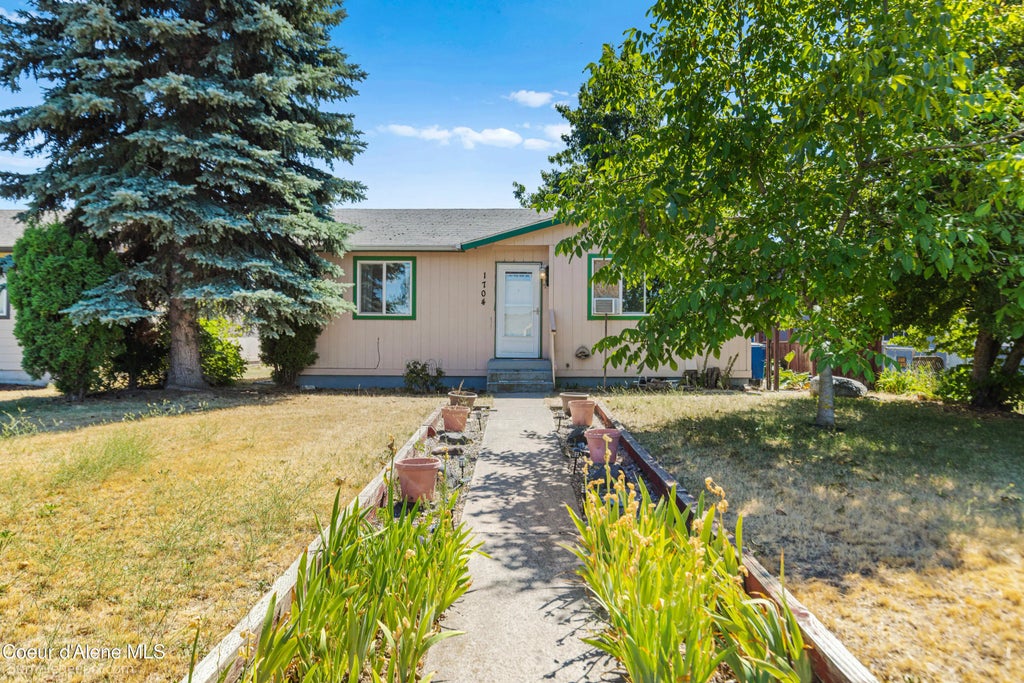 Must See 1992 built, move-in ready rancher with light n' bright open concept in the heart of Post Falls with 3 bedrooms & 2 bathrooms. Inside, you'll find a living room with cathedral ceilings opening up to extra large kitchen-perfect for everyday living and entertaining. Enjoy cooking in the open kitchen with tons of counter space, hickory cabinets & peninsula with breakfast bar seating. The oversized primary suite features en-suite bathroom with tub, walk-in shower, separate vanity & both a walk-in & standalone closet. Two additional nice-sized bedrooms are on the main floor. Large finished basement with rec room and extra storage. Enjoy the comfort of a high-efficiency gas furnace and vinyl windows. Outside, the partially fenced backyard w/ private patio, raised garden beds, storage shed, & mature landscaping are perfect for barbecuing and basking in the outdoors. Close to Post Falls medical facilities, schools, grocery stores, restaurants, parks & centennials trail.