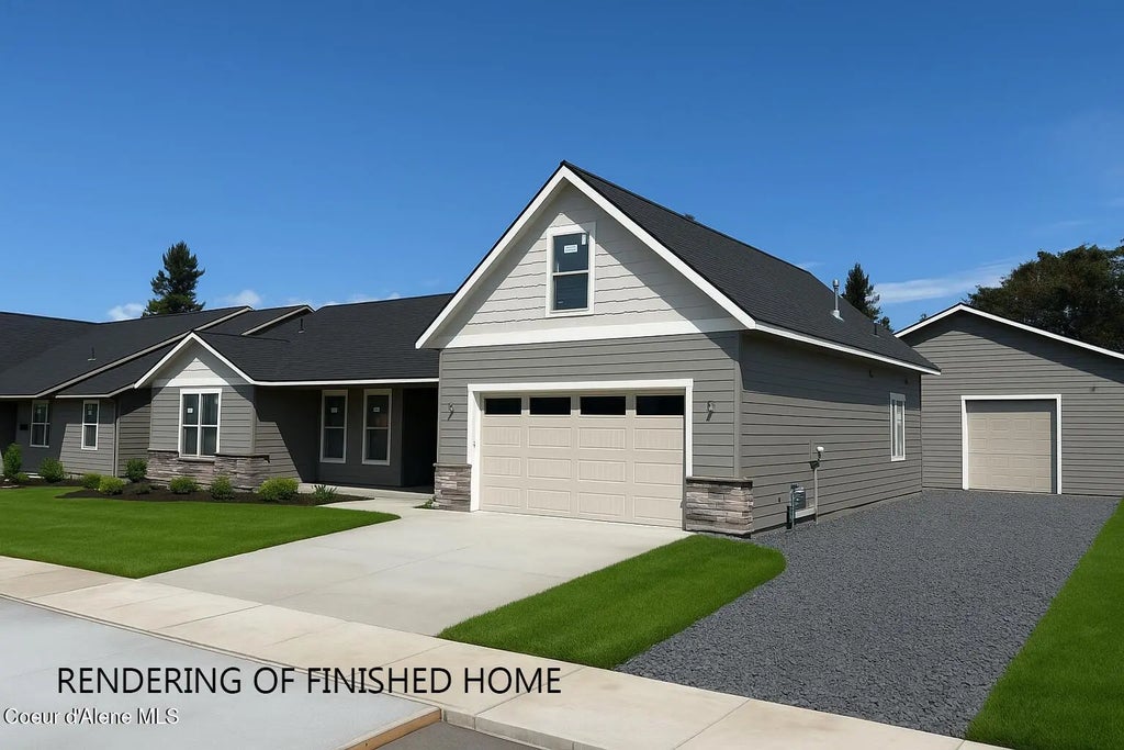 Beautifully designed home nearing completion in a desirable new community close to I-90, Highlands, and other amenities! Thoughtfully laid out main level features an open kitchen, dining, and living space, along with two bedrooms, a full bath, and a spacious master suite with dual closets and private bath. Enjoy touches like a gas fireplace and granite countertops in the kitchen. Upstairs includes a bonus room, fourth bedroom, and full bath with its own thermostat—perfect for guests or extra living space. Generous 30' x 36' shop and a great yard for outdoor fun. Finished very soon!