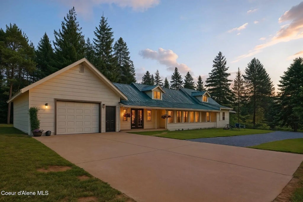 Tucked in the timbered hills just 15 minutes from the heart of Sandpoint, this peaceful North Idaho retreat offers the perfect balance of seclusion, comfort, and accessibility. Located on 20 pristine acres in the Wrenco Valley, this thoughtfully designed 3-bedroom, 2.5-bathroom home spans approximately 2,604 square feet and is enveloped by tall pines, open skies, and fresh mountain air. As you arrive, a sense of calm and quiet sets in—the home is perfectly sited for privacy, surrounded by a natural buffer of forest. The property unfolds gently with open lawns, established garden beds, and ample room for animals, hobbies, or simply enjoying the land. A spacious barn and detached shop offer abundant storage and workspace for equipment, toys, or creative projects. The home itself blends modern comfort with rustic charm. It features clean lines, warm finishes, and practical design. It features clean lines, warm finishes, and practical design. The open-concept kitchen is the heart of the home, showcasing a large center island, custom cabinetry, solid-surface countertops, and updated appliances. The layout flows seamlessly into the dining area and living spacesideal for gathering with friends or relaxing in solitude. A highlight of the home is the stunning dining room, accented by rich blue walls, crown molding, and a vintage-style wood cookstove set into a stone hearthan elegant nod to the past that still adds warmth and function today. French doors lead outside to the peaceful landscape, blending indoor and outdoor living.