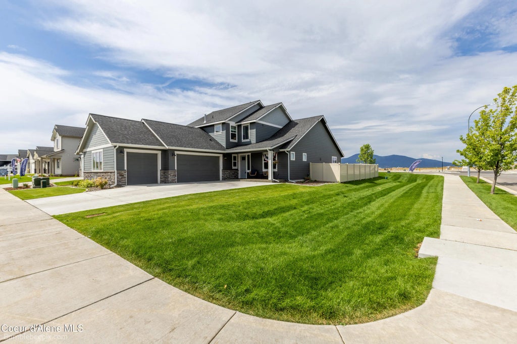 Welcome to this stunningly appointed home, where modern design meets comfortable living. The heart of the home is a spacious open-concept kitchen, featuring white cabinetry, a large central island, and stainless steel appliances. It flows seamlessly into the dining and living areas, creating an ideal space for entertaining. The living room boasts vaulted ceilings, a beautiful fireplace, and natural light, with a large sliding glass door to a covered back patio. The home also includes a versatile office and an upstairs loft. The primary suite is a peaceful retreat with a spacious walk-in closet and an en-suite bath with a double vanity and soaking tub. A dedicated laundry room, stylish half bath, and three-car garage add to the home's functionality. The exterior features a covered front porch and a fully fenced backyard, creating a truly welcoming environment.