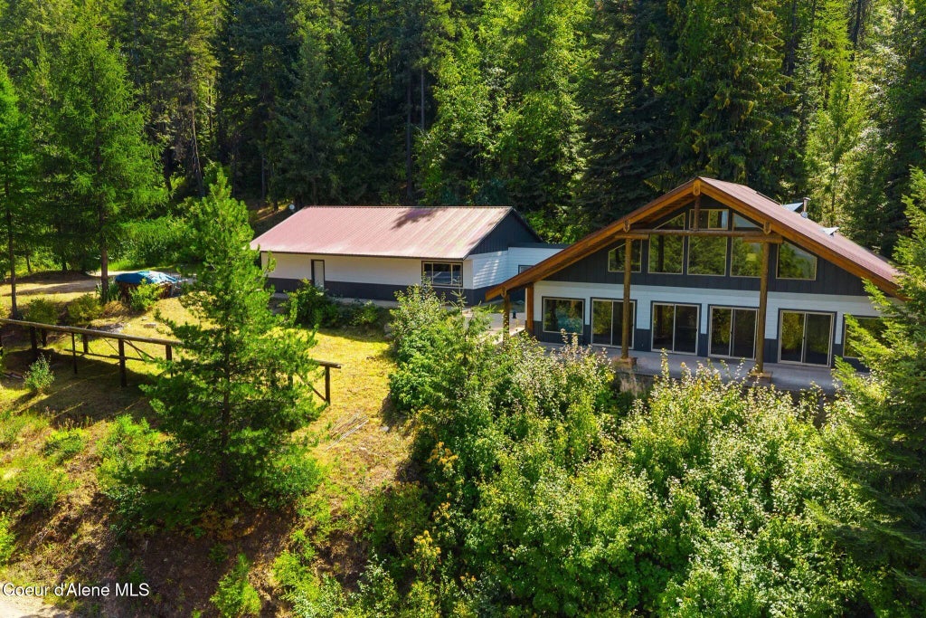 Spectacular off-grid retreat on 9.95 acres with stunning Pend Oreille River views! This 2,028 sq. ft. ICF-Robustbuilt main house features soaring timber beams, large windows, and luxurious amenities including a primary suite with soaking tub, second bedroom with ensuite, and a gourmet kitchen with high-end alder cabinets and stainless appliances. Powered by a 10kW solar array, lithium batteries, backup generator, and a full-house hydronic wood boiler and fed by a 9 GPM private well. Oversized 1,800 sq. ft. garage, breezeway, and abundant storage and half bath to complement the home. A charming 620 sq. ft. guest cabin offers an additional bedroom, full kitchen, and living space, perfect for visitors or rental income. Situated at the end of a quiet, private road with sweeping views of the river, mountains, and valleys, this self-sufficient property borders thousands of acres of wilderness. Priced $154K below assessed value, it's a rare opportunity for private, off-grid Estate!
