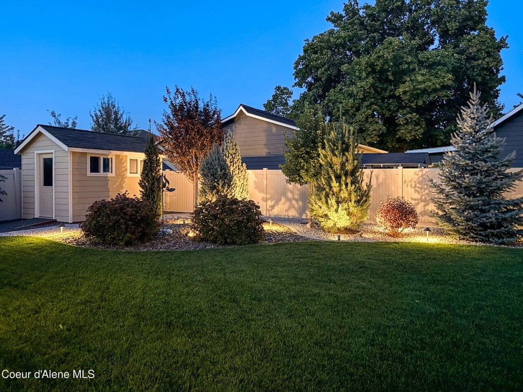 Welcome to your private oasis in the heart of Hayden! This immaculate single-level rancher is move-in ready with great curb appeal, a fully landscaped yard, and covered front and back porches perfect for relaxing or entertaining. The backyard retreat offers a side garden with raised boxes, gated side yard, full fencing with double gates, and gravel storage area. Inside, enjoy an open floor plan with cathedral ceilings, cozy fireplace, and surround-sound speakers. The gourmet kitchen features granite counters, large island, and an oversized walk-in pantry with extra storage. A spacious dining area, den/office, mudroom, and separate laundry room add both style and function. The primary suite plus two additional bedrooms are thoughtfully designed for comfort, all on one level. Tinted windows provide energy efficiency and privacy. Super clean and like new, this home sits in a sought-after Hayden neighborhood to don't wait to make it yours!