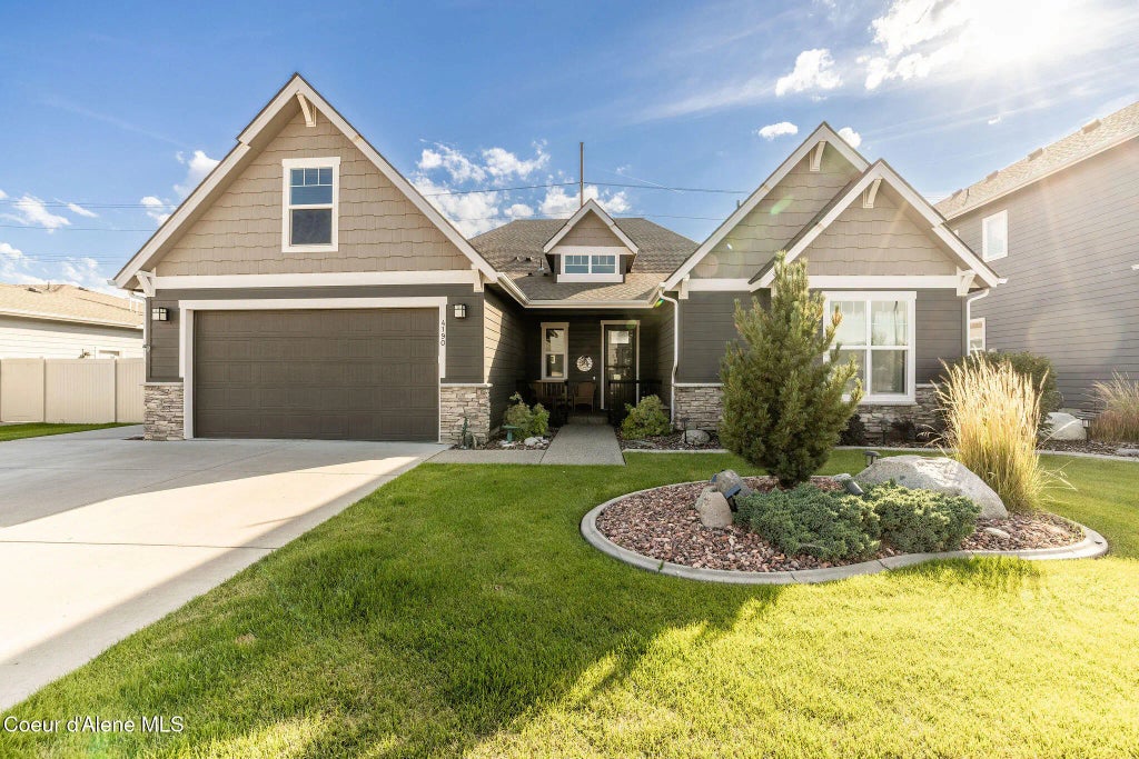 Luxury Living with Vaulted Ceilings, Eight-Foot Doors, Mountain Views, Privacy, and Access to the CDA Trail Nestled in a serene setting with no rear neighbors and captivating mountain views, this exquisite home combines elevated design with premium upgrades throughout. Step inside to discover expansive living spaces enhanced by soaring vaulted ceilings and elegant eight-foot doors, creating an airy, grand ambiance. At the heart of the home, the open-concept Kitchen and Great Room serve as an entertainer's dream—featuring an oversized island, abundant custom cabinetry, and seamless flow into the spacious Living and Dining areas. From here, step effortlessly into the covered outdoor living area, perfectly positioned to enjoy peaceful sunsets and year-round gatherings in total privacy. Designed for comfort and tranquility, the secondary bedrooms provide quiet seclusion—ideal for guests or family. Upstairs, a spacious bonus room offers endless versatilitywhether as a media room, executive office, or fourth bedroom tailored to your lifestyle.