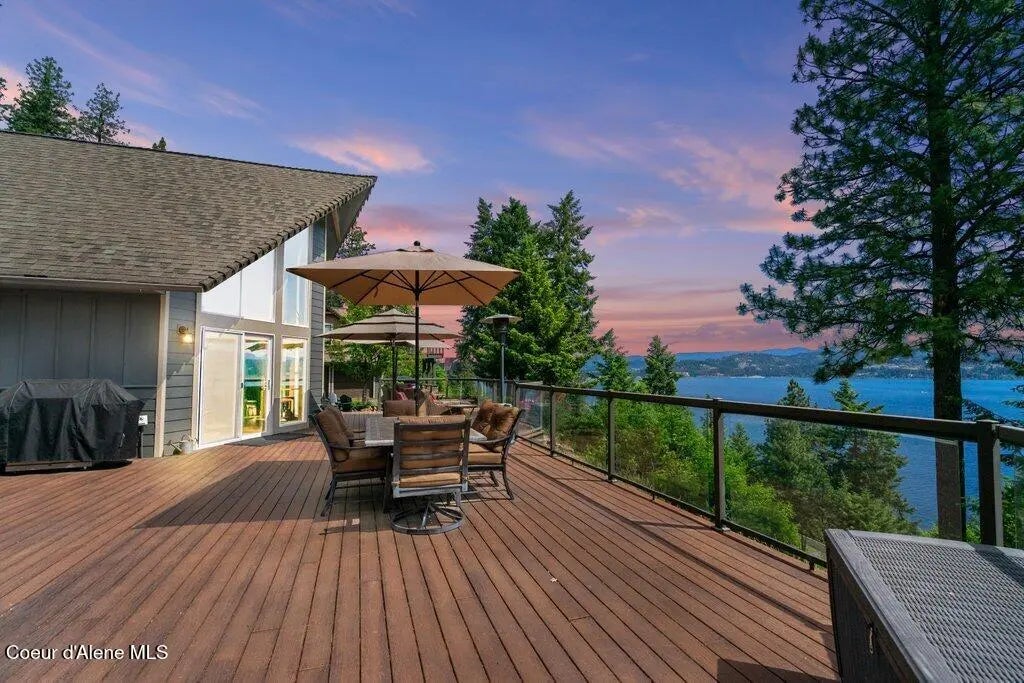 Breathtaking Lake Coeur d'Alene Views in Prestigious Harbor View Estates Discover a rare opportunity to own a stunning residence in the coveted gated community of Harbor View Estates, perched above the sparkling waters of Lake Coeur d'Alene. This home offers an unbeatable combination of privacy, luxury, and sweeping 180-degree lake views, all nestled in a peaceful North Idaho setting. Designed with timeless elegance and modern comfort, this 3,600 sq ft single-level floor plan includes a versatile bonus loft and a private apartment-style bedroom above the spacious three-car garage—ideal for guests, extended family, or a home office setup. Step into the heart of the home: a gourmet chef's kitchen featuring high-end appliances, ample storage, and an expansive entertainer's bar that invites connection and conversation. Whether hosting a crowd or enjoying a quiet morning coffee, the layout flows effortlessly from kitchen to living space—all bathed in natural light and framed by unforgettable lake views. The master suite, thoughtfully remodeled in 2009, was designed to capture the serene beauty of the lake through oversized windows and offers a luxurious retreat with spa-inspired finishes. Each room in this home is crafted to highlight the natural surroundings, creating a seamless indoor-outdoor lifestyle. Additional features include: Elegant open-concept living and dining spaces High-end finishes and luxury upgrades throughout Tranquil outdoor living areas with view-facing patios and landscaping Gated privacy and access to a premier lakeside community From sunrise over the water to golden-hour reflections, every moment here is elevated by the stunning backdrop of Lake Coeur d'Alene. This is more than a home. it's a place where every day feels extraordinary.