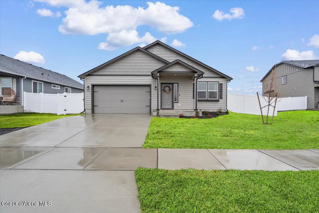 Welcome Home! Come see this beautifully designed 1,574 sq. ft. single level home that combines smart layout with everyday comfort, nestled in the heart of scenic Rathdrum, Idaho. This mid-sized three bed, two bath residence offers the perfect balance of open-concept living and private retreat, all set against the backdrop of North Idaho's natural beauty. Step into a chef-inspired kitchen featuring generous quartz counter space, ample cabinetry, full tile backsplash, gas range and a convenient breakfast bar—ideal for casual meals or entertaining guests. The expansive living room flows seamlessly into the dining area, creating a bright and welcoming space for gatherings of any size. The spacious and private primary suite is your personal retreat, complete with a quartz topped dual vanity bathroom and an oversized walk-in closet. Two additional bedrooms share a second full bath, rounding out this efficient and versatile floor plan. ***1% rate buydown available OAC***