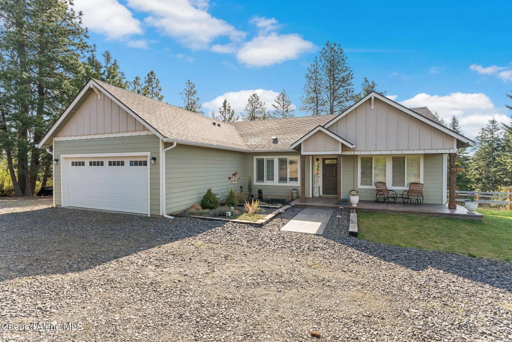Welcome to your private Coeur d'Alene oasis! This 2020-built, 3-bedroom, 2-bath, 1,558 sq. ft. single-family home rests on 10.22 acres, blending serene tree cover with 4+ acres of fenced pasture, perfect for a hobby farm or equestrian pursuits. Located just outside Coeur d'Alene in a desirable, private setting, this property features a high-producing well with water rights. The home boasts modern upgrades, including granite countertops, farmhouse trim, an open-concept floorplan, efficient heating and cooling, a built-in entertainment center, soft-close drawers, and high-end finishes. Enjoy a stamped concrete front porch, a whole-house water filtration system, a fenced backyard, and a sprawling cedar deck spanning the back of the home. Additional highlights include an automated chicken coop and an already-cleared shop pad, all tucked away on a private, gated road, offering both charm and functionality in your own slice of paradise!