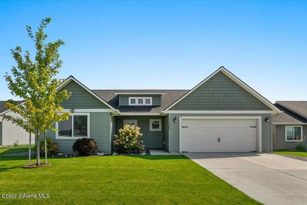 Welcome to this beautifully maintained single-level home in a walkable neighborhood. Built in 2021, this home features a split-bedroom floor plan and open-concept layout including high ceilings, quartz kitchen countertops, and a cozy gas fireplace in the living room. The spacious primary suite offers a walk-in closet and private bath, while central A/C and ceiling fans ensure year-round comfort. The garage includes a dedicated outlet for electric vehicle charging, and the home also features a generator hookup for added peace of mind. The fully fenced and landscaped backyard is a gardener's dream with raised flower/garden beds, herbs, strawberries and blueberries — all maintained with a sprinkler system. You'll also find a 14'x14' storage shed and an additional garden shed. With no homes behind you, you'll enjoy a backyard without neighbors overlooking your space. Located close to schools, parks, and local amenities, this home offers a blend of convenience & quiet North Idaho living.