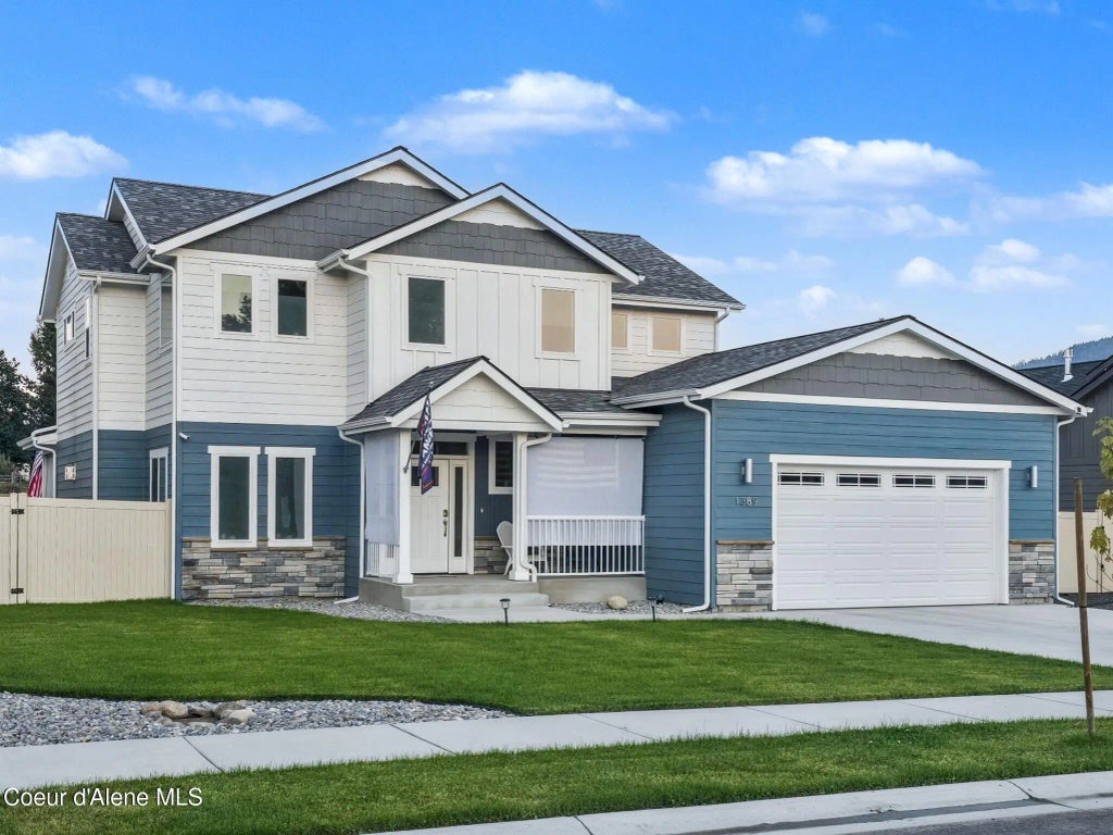 Welcome to this stunning 2023-built, two-story home offering 2,504 sq. ft. of thoughtfully designed living space on a .23-acre lot. The property is fully landscaped and features a backyard fence and new covered patio, front and back sprinkler system, and a beautiful curb appeal. Inside, you'll find an array of upgrades including custom kitchen cabinetry, quartz countertops, take as long a shower you want from a tankless water heater in the luxurious new walk-in shower, and a jetted tub. Most light switches are equipped with a dimmer lighting, adding the perfect ambiance to every room. This home is ideally located from 4 different major ski resorts and nestled between Hayden Lake Country Club and Avondale Golf Course. Enjoy the lifestyle of a quick golf car ride to Hayden Lake beaches, making this home not only beautiful but perfectly situated for recreation and leisure. The opportunity to own this exceptional property in one of Hayden's most desirable areas is all yours.