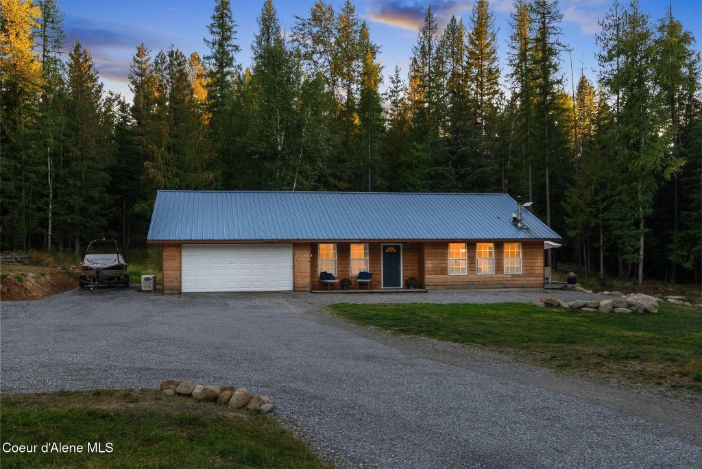 Tucked away on 5 private acres of North Idaho forest, this single-level 3 bed, 2 bath home offers the kind of peace and simplicity many dream of for their next chapter. Built in 2005 with 1,600 sq ft, the home is set up for year-round comfort with a Kuma wood stove, efficient Fujitsu mini-split, and an 8KW Generac backup generator. Inside, stainless appliances, durable vinyl plank flooring, and updated lighting create a home that's easy to care for and comfortable to live in. Outside, a newly refreshed gravel drive leads to the attached 2-car garage, offering both function and convenience. Outbuildings include a 12x16 insulated storage building, a wood shed, and two additional storage sheds. With a metal roof, cedar siding, private well, septic system, and no CCRs, you'll enjoy the freedom to make this property your own. Less than half a mile from a paved county road and only 17 miles from Sandpoint, it's the perfect blend of privacy, convenience, and fantastic neighbors.